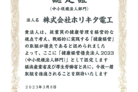 2023年3月8日 健康経営優良法人に認定されました。 健康経営優良法人取得に向けて様々な取り組みを行って参りました。 これからもすべては従業員さんがより健康になり長く働いて頂ける職場作りを目指して精進して参ります!
